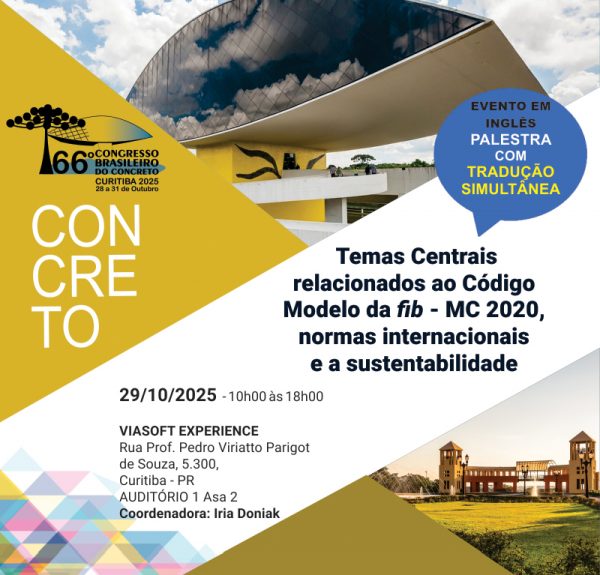 08/09/2025 Em Newsletter‚ Sem categoria Comentários desativados 66CBC2025 – Temas Centrais relacionados ao Código Modelo da fib – MC 2020, normas internacionais e a sustentabilidade