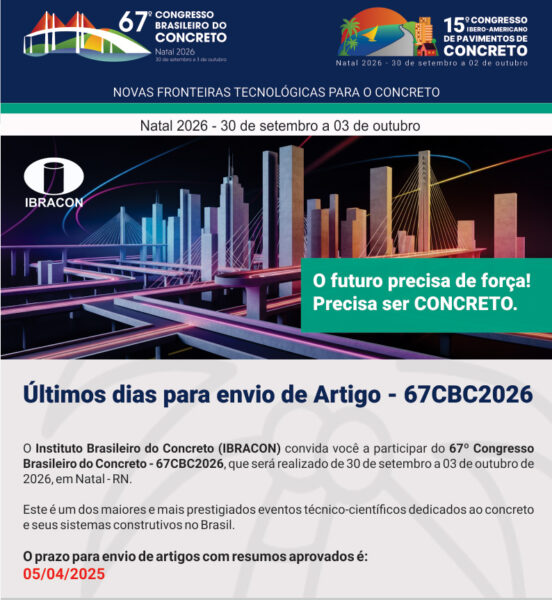 02/04/2026 Em Newsletter‚ Sem categoria Comentários desativados 67CBC2026 – ConcreTech Island: A ilha da tecnologia para o futuro do concreto